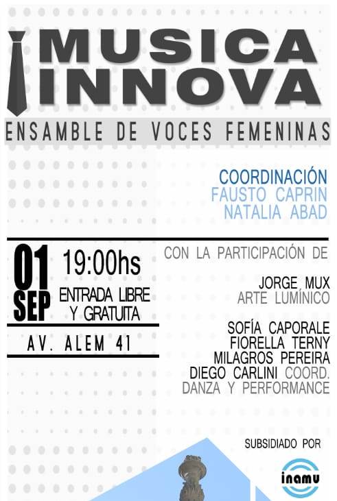 En la noche del domingo, las voces femeninas de Música Innova (coordinado por Fausto Caprin y Natalia Abad), resonaron en las salas y pasillos de Casa Coleman: en una presentación subsidiada por el INAMU (Instituto Nacional de Música), se montó el espectáculo coral, enmarcado por el arte lumínico de Jorge Mux, y con el apoyo del grupo de danza de Sofía Caporale, Fiorella Terny, Milagros Pereira y Diego Carlini.